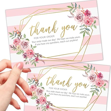 Amazon Com 50 Extra Large Thank You For Your Order Cards 4x6 Faux Gold And Pink Bulk Package Inserts For Any Small Business Purchase Office Products