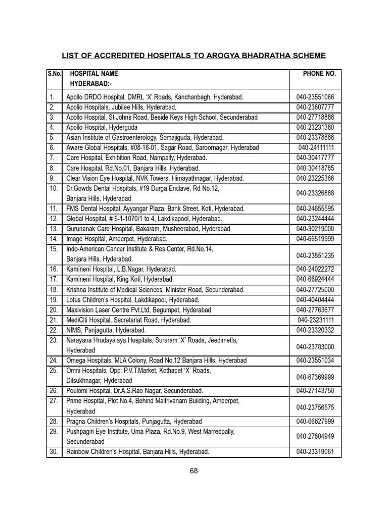 List Of Accredited Hospitals Under Arogya Bhadratha
