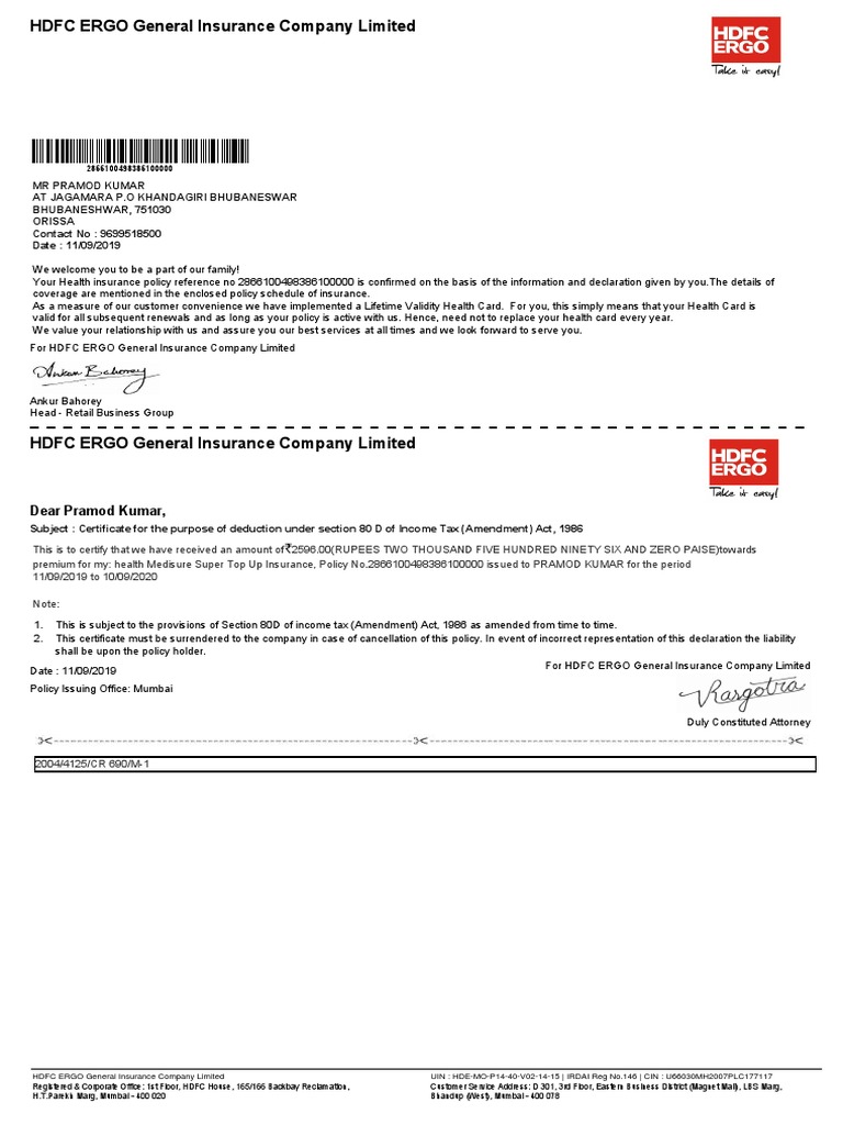 Hdfc Ergo General Insurance Company Limited Health Insurance